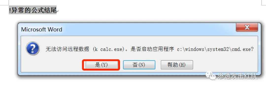 点击两次“是”就会调用 DDE 执行 calc.exe: