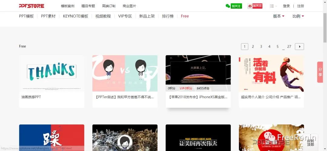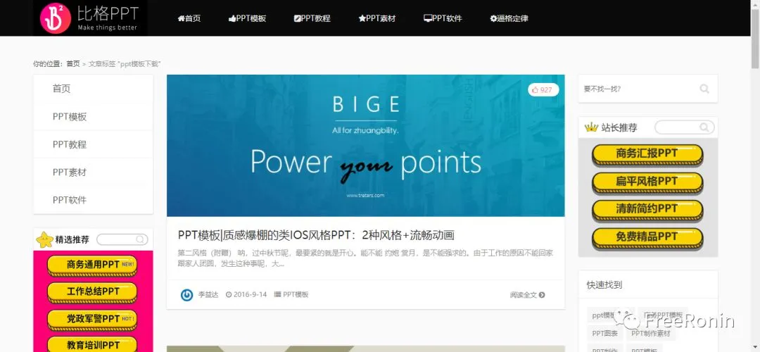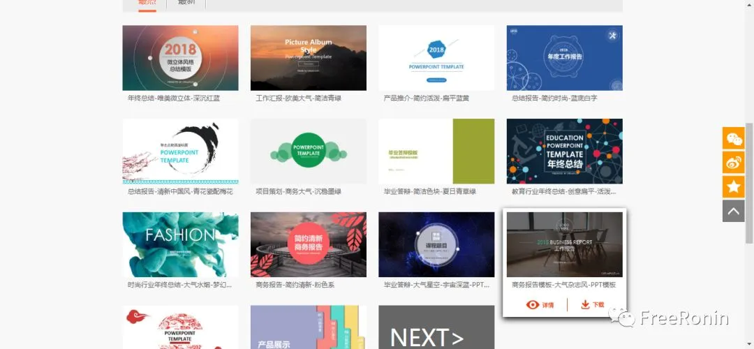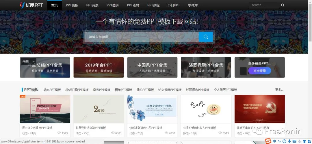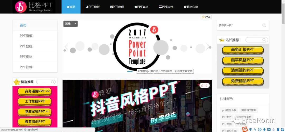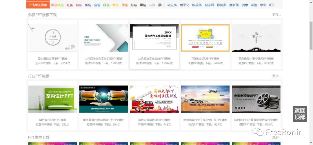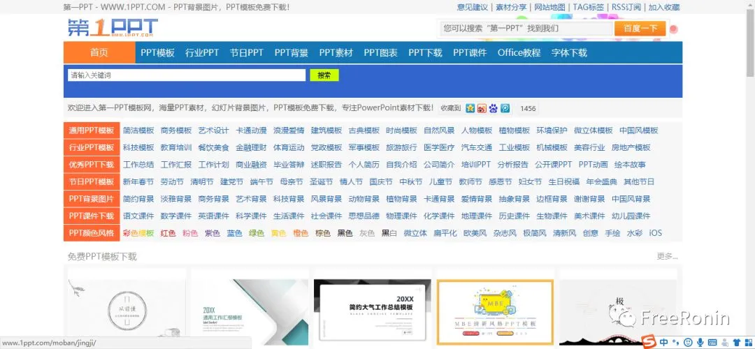 大家好,我是FreeRonin,今天分享一些免费下载PPT的网站,一说要做PPT,大部分人都只知道上百度找PPT模板。对于怎样才能快速找到高质量的PPT模板,大家心里都没有什么头绪。今天我来给大家推荐几个超级好用的高质量PPT模板网站,几乎涵盖了全网90%的PPT模板,以后不要再盲目在百度上找模板了!下面就把它分享给大家,希望大家喜欢,如果这篇文章能帮上你的忙,或你的朋友有类似的需求,欢迎大家用各种方式扩散~~~