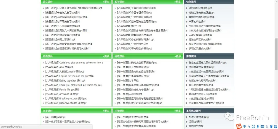 提供ppt课件免费下载范围包含了从小学到大学各个学科(语文,数学,英语,物理,化学,生物,地理,历史,政治,科学,大学,音乐,美术,信息,班会,艺术,劳技,品德~~~