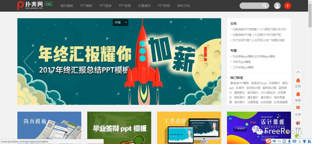 扑奔网涵盖了很多高质量且免费的模版和做PPT用到的素材等资源。