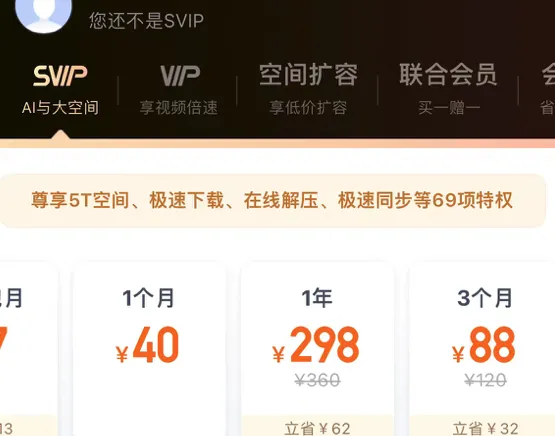 本来像咱们这样的下载服务一个月用不了几次的用户,但开个SVIP就得一个月40块,实在是有点奢侈。