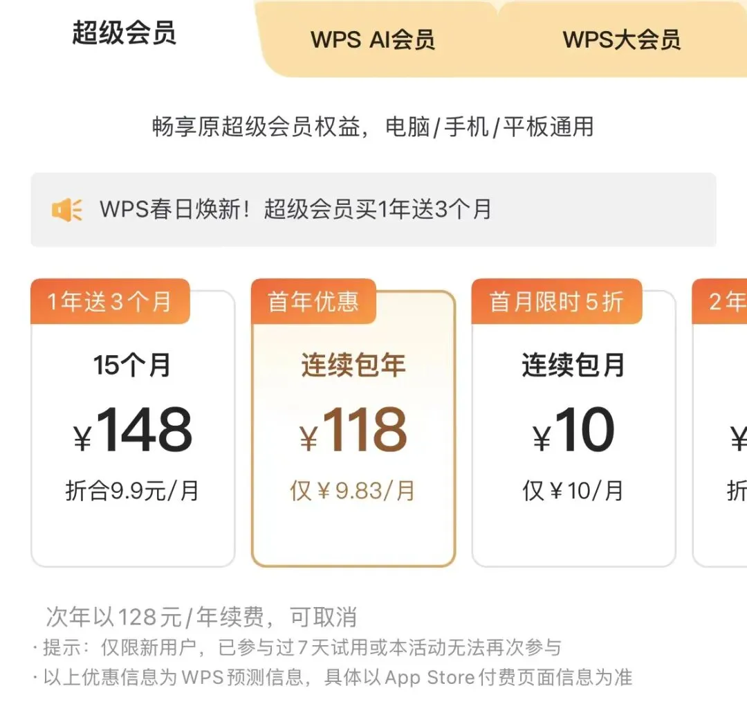 一直用不起国内免费办公软件的小柴,第一时间下载了个WPS,打开一看,如今WPS的会员,之前咱们熟悉的稻壳会员之类的叫法没有了,现在有三种,分别为:超级会员、WPSAI会员和WPS大会员。