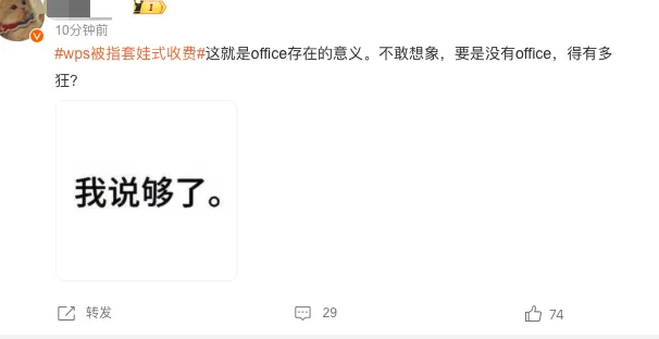 该网友也惊呼,要没有office,WPS估计还会疯狂。