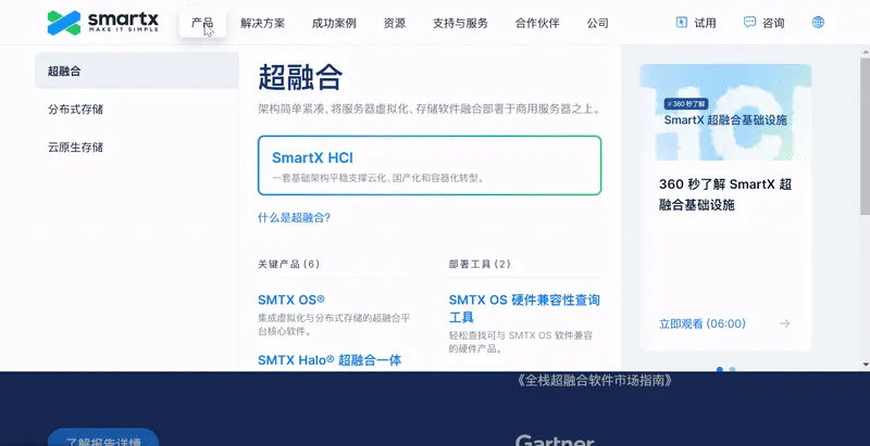 目前,SmartX 硬件兼容性查询工具分别提供 SMTX OS 超融合软件及 SMTX ZBS 分布式存储软件的硬件兼容信息。用户可点击文末“阅读原文”,或通过 SmartX 官网的产品目录栏进入该平台。