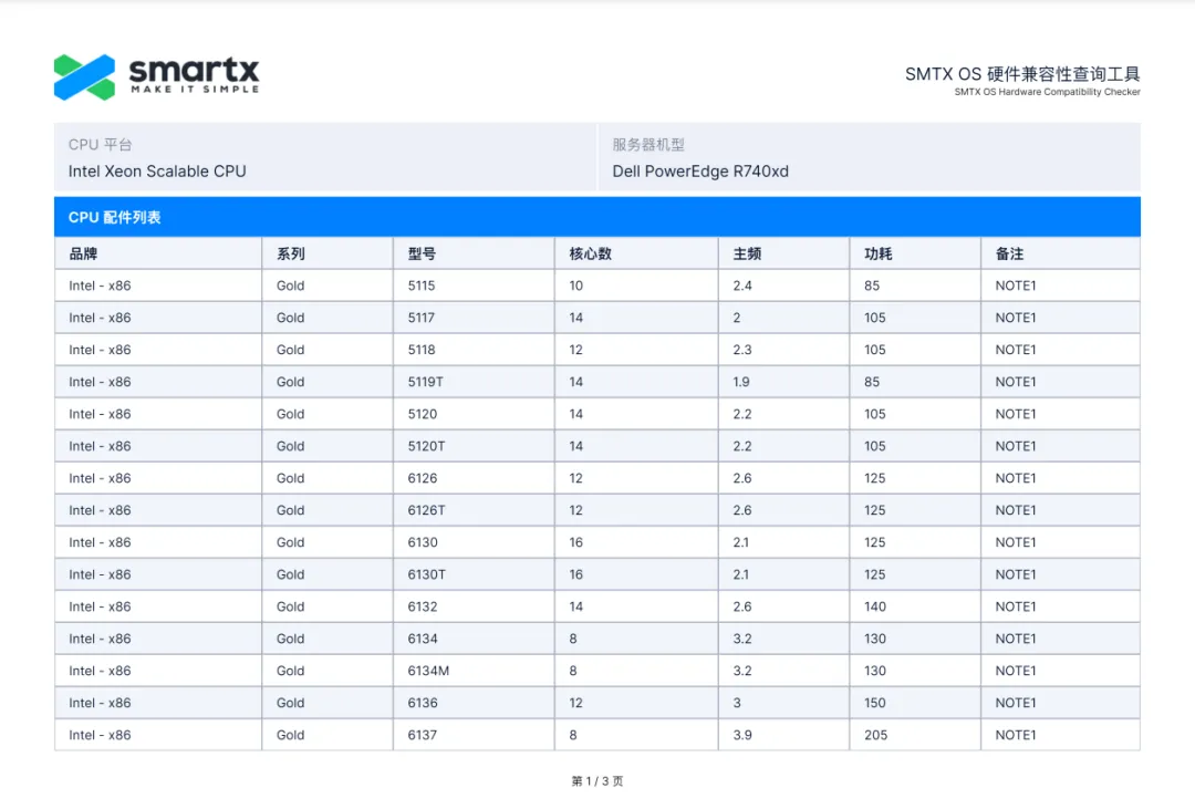 SmartX 硬件兼容性查询工具不仅支持用户进行兼容性的查询、筛选,还方便用户将查询到的信息下载保存。