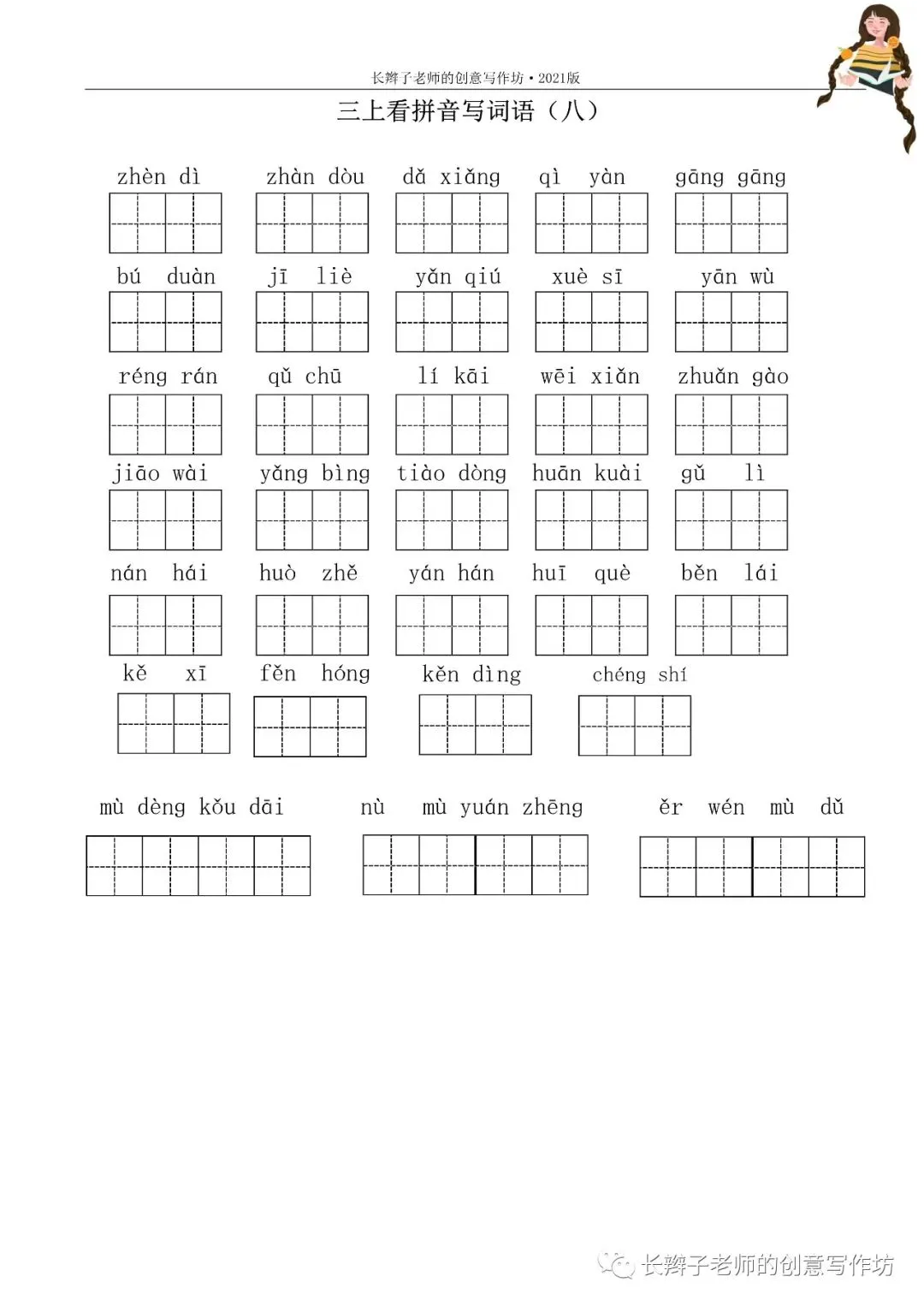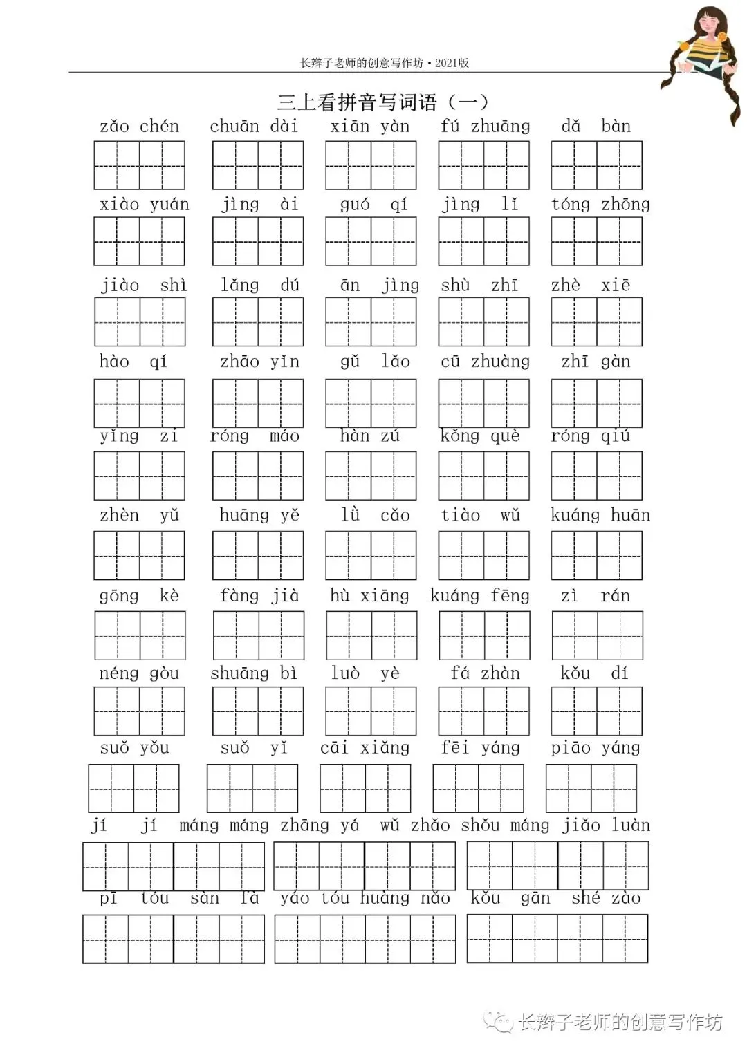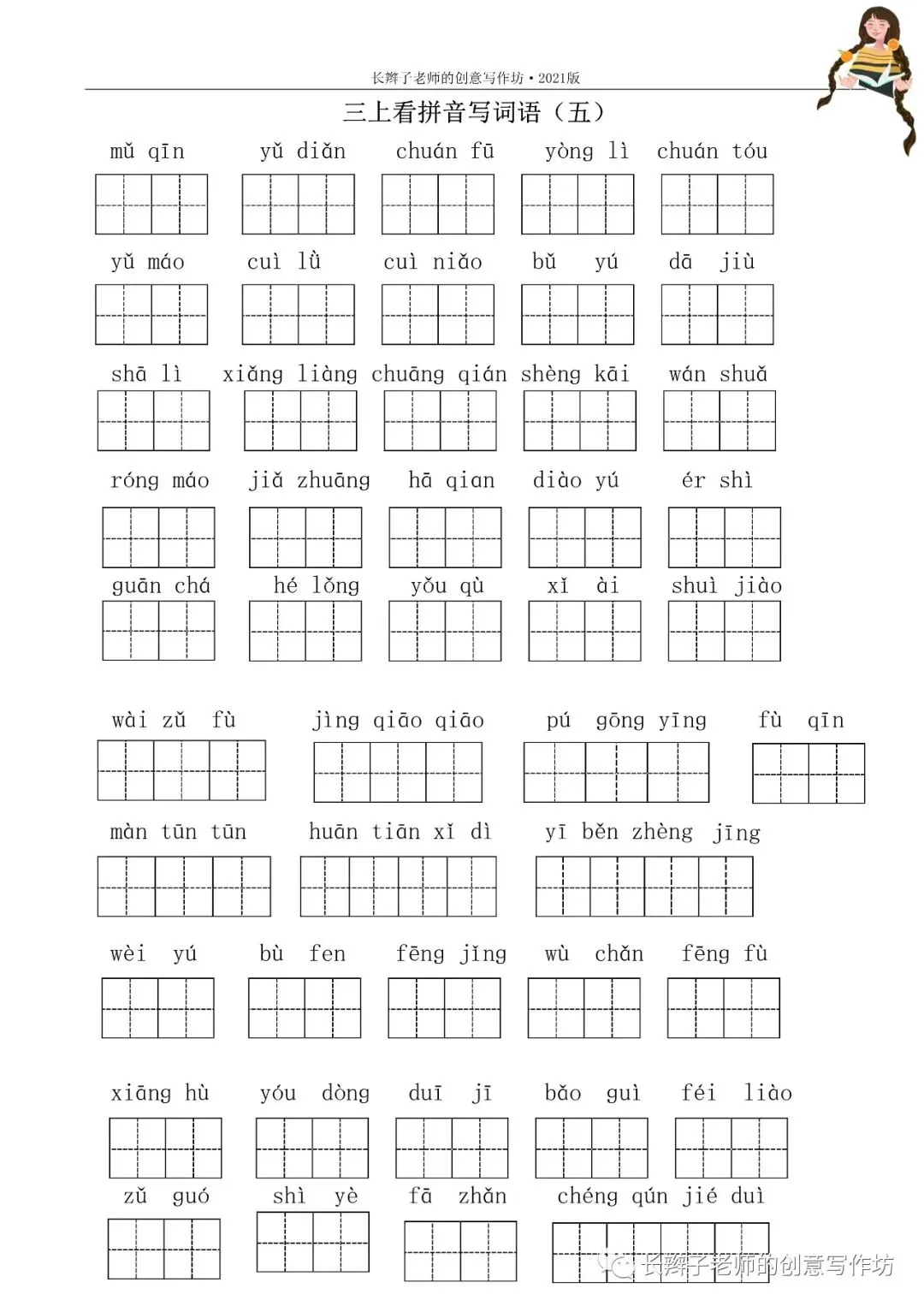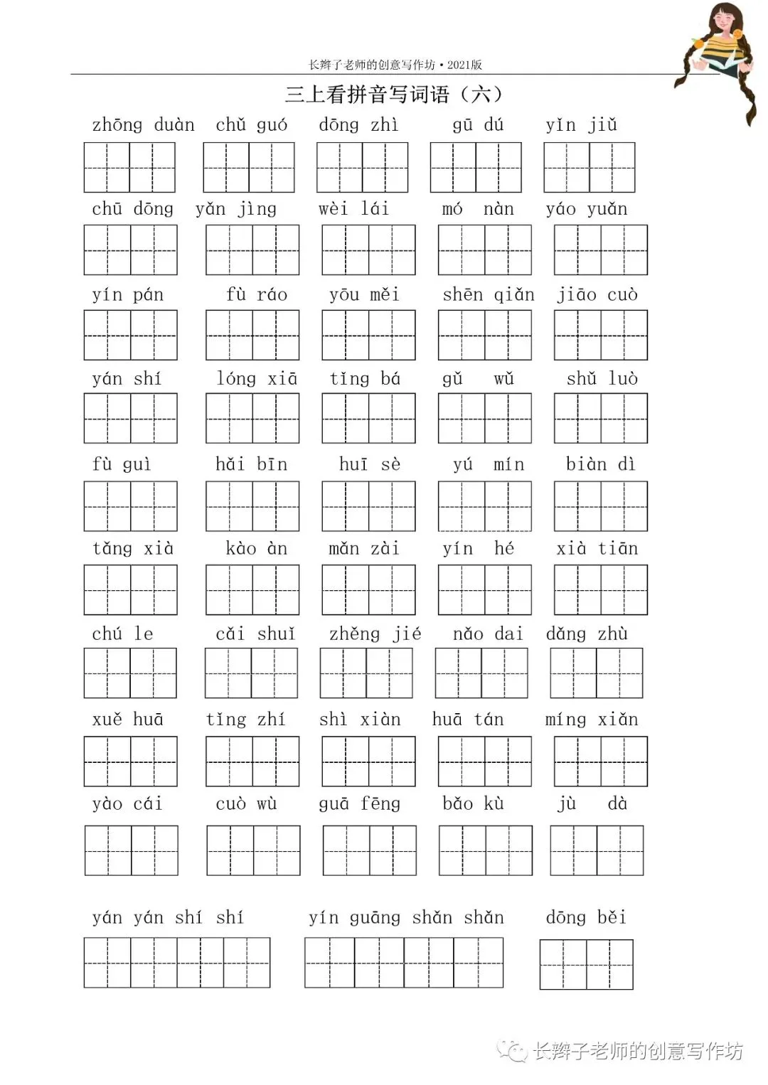 三上词语测试卷(word下载) 三上词语测试卷 文|郭学萍 前言 若需要《三上词语测试卷》,请关注微信公众号“长辫子老师的创意写作坊”,在首页留言区写——三上词语测试卷,便会自动弹出提取链接。 自主练习卷 参考答案