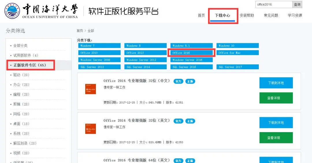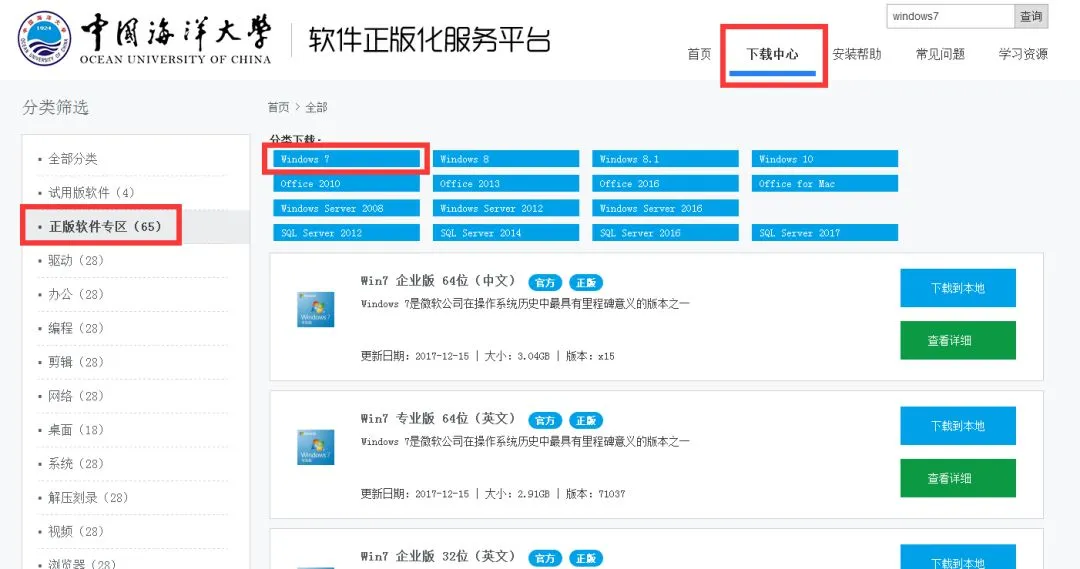 ①进入“下载中心”—“正版软件专区”,选择下载所需要的操作系统或者办公软件安装包下载安装