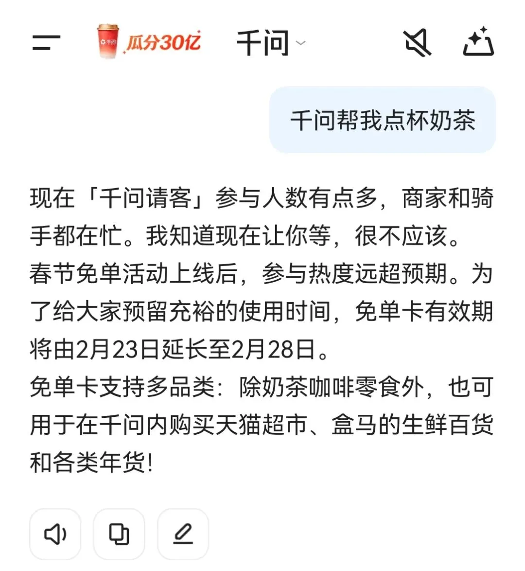 千问APP送的奶茶你喝到了吗?