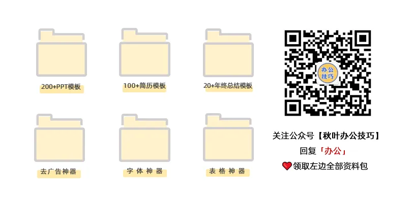 如果还没看够,记得点击下方卡片,关注【秋叶办公技巧】↓↓↓