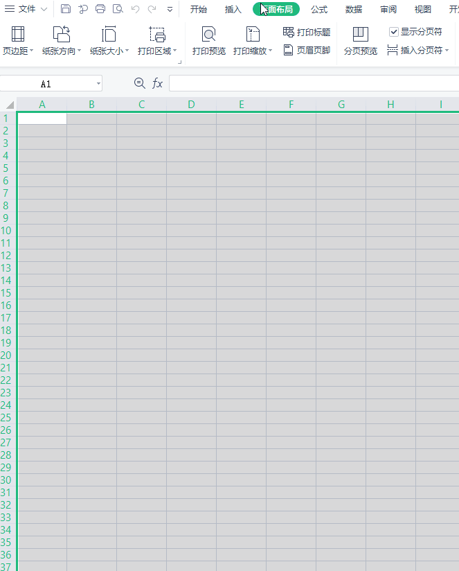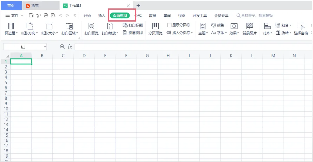 在正式介绍前,大家可以先点击 WPS 工作簿顶的部菜单栏,然后点击页面布局,工具栏会出现多页面布局的调整项: