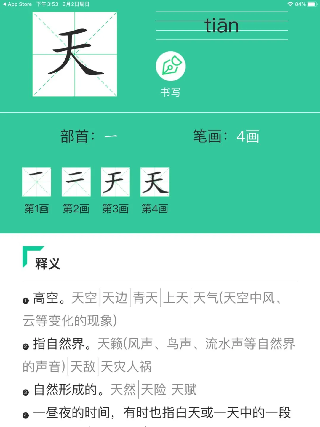 生字的部分,对每个字都有详细的书写,释义,组词,成语等等,而且都是根据教材来的,学龄前认字的娃也可以用起来好么!!!