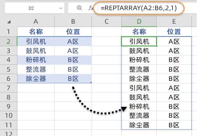 REPTARRAY函数:能够按指定次数重复数组;