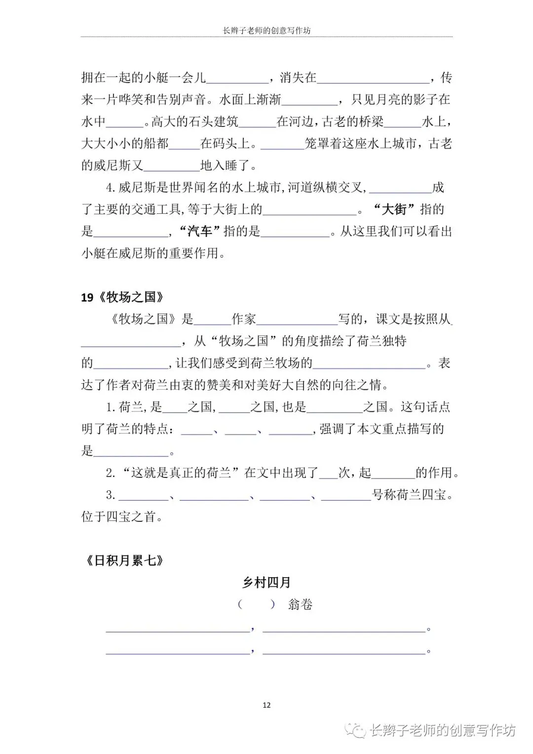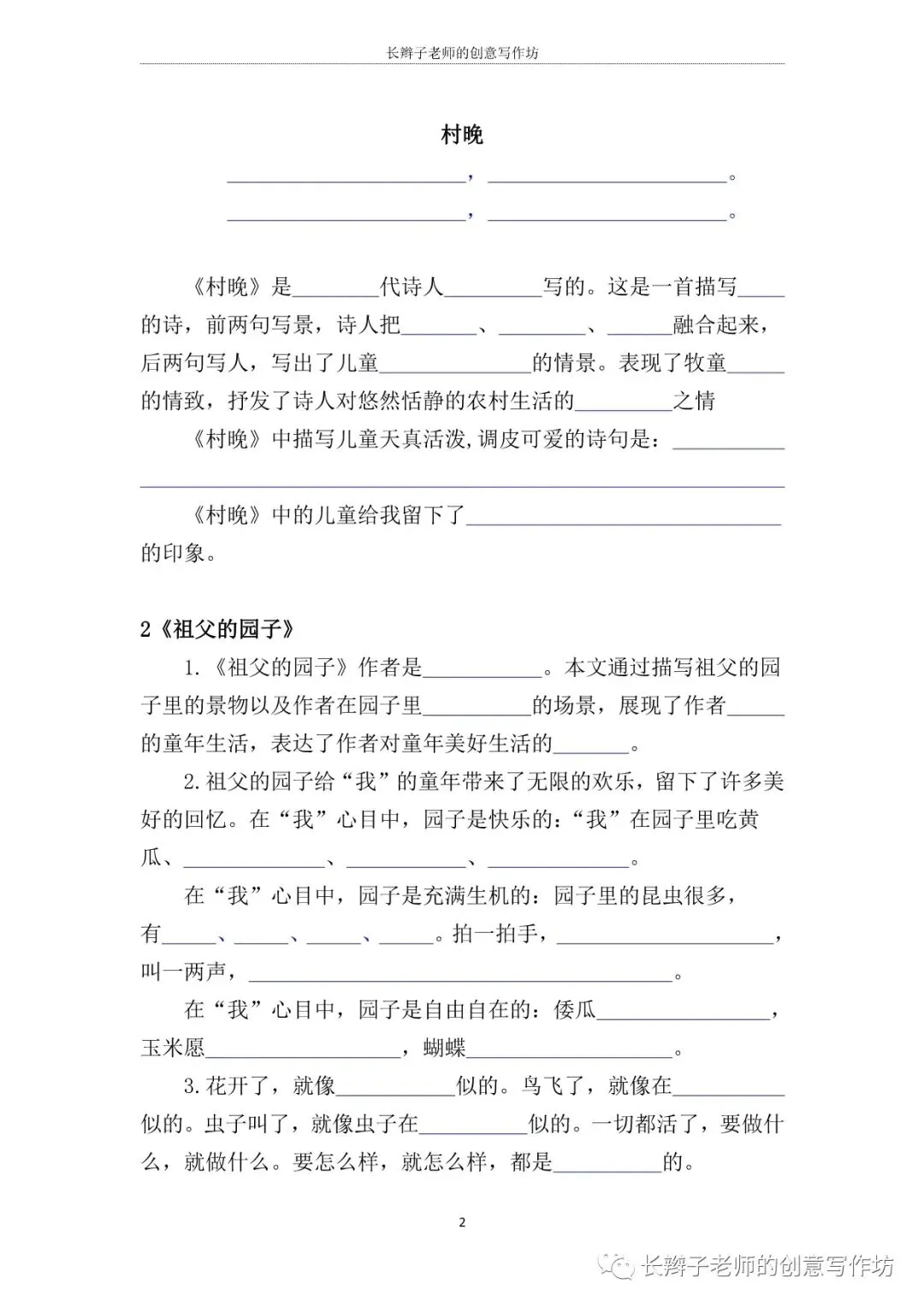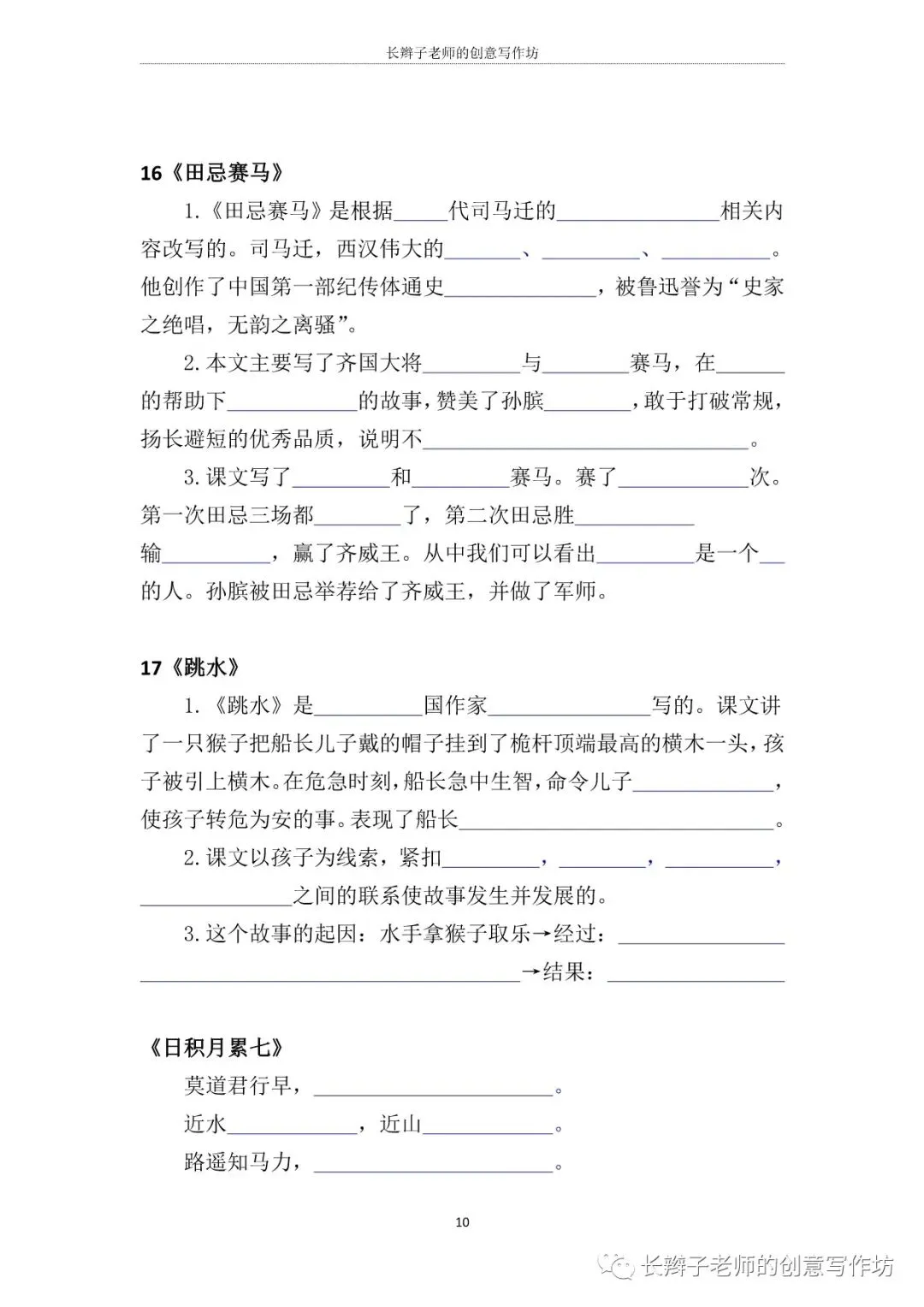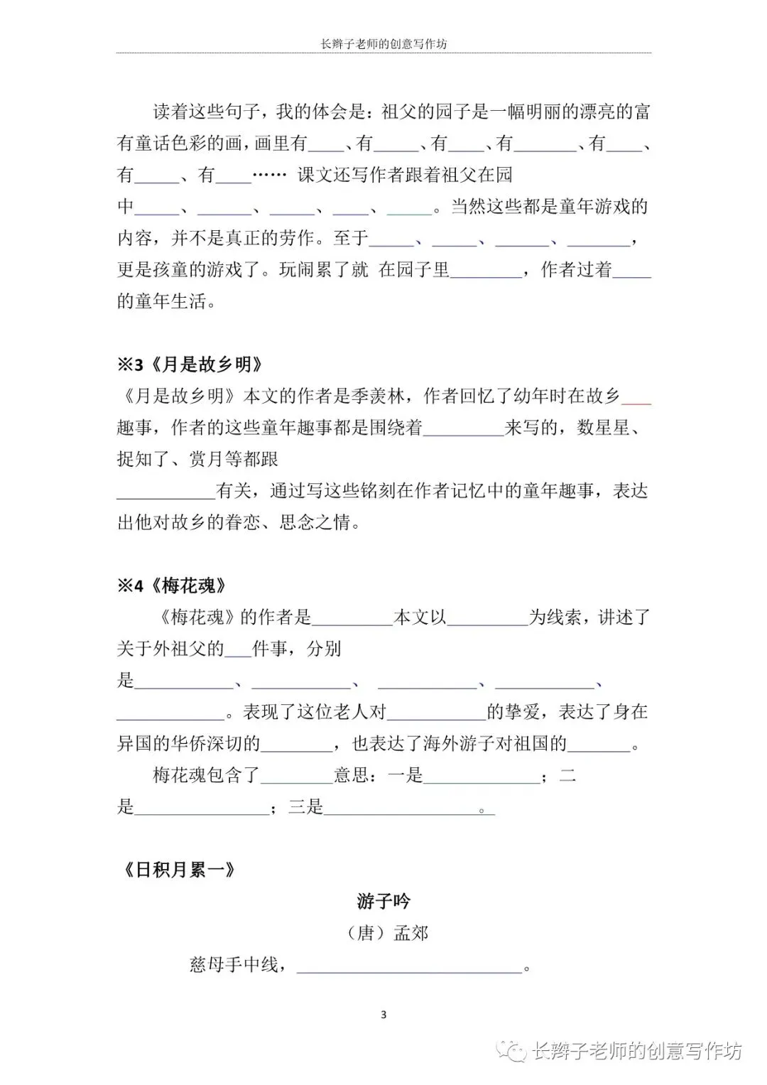 若需要“五下必背课文自测表”,请关注微信公众号“长辫子老师的创意写作坊”,在公众号首页对话框写——五下必背课文,便会自动弹出提取链接。