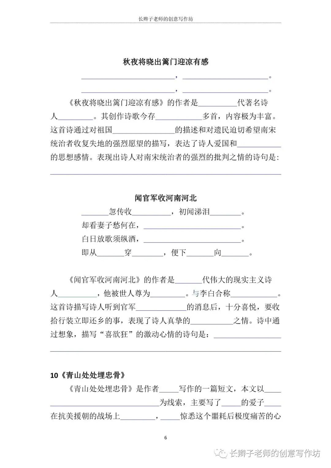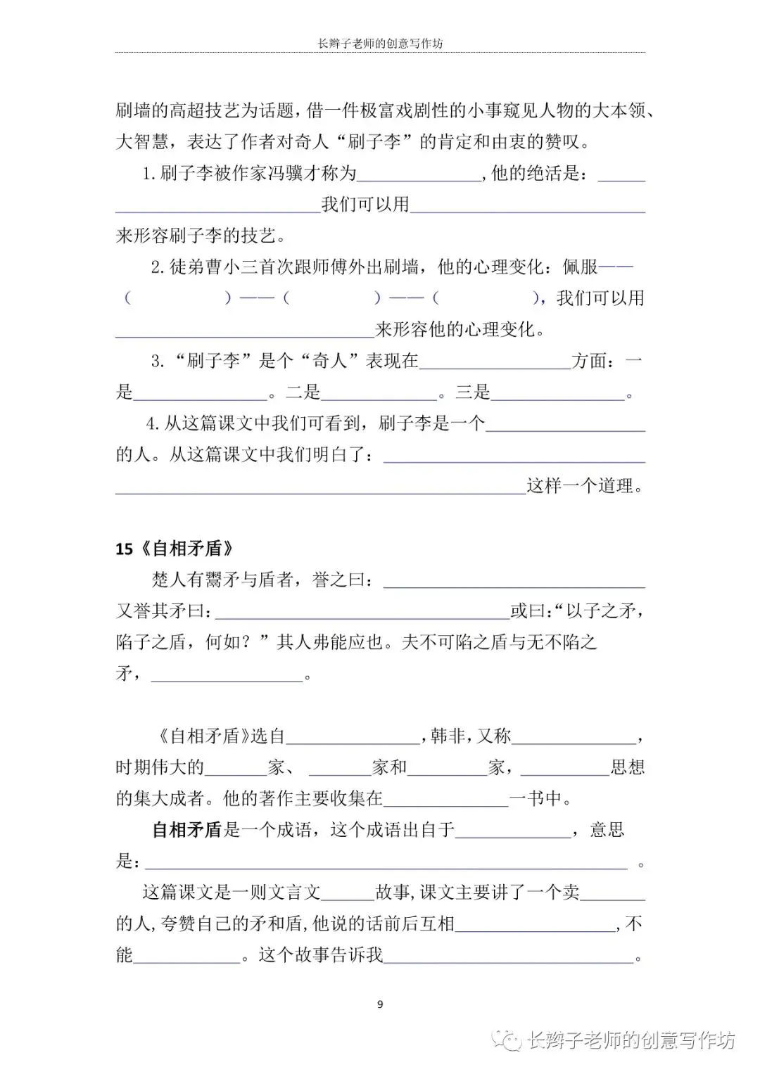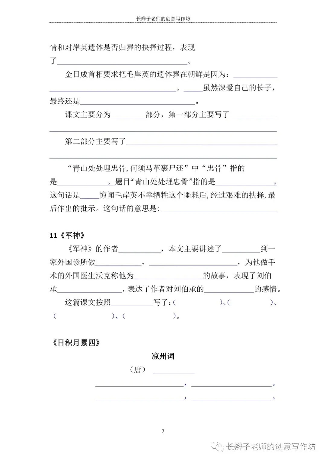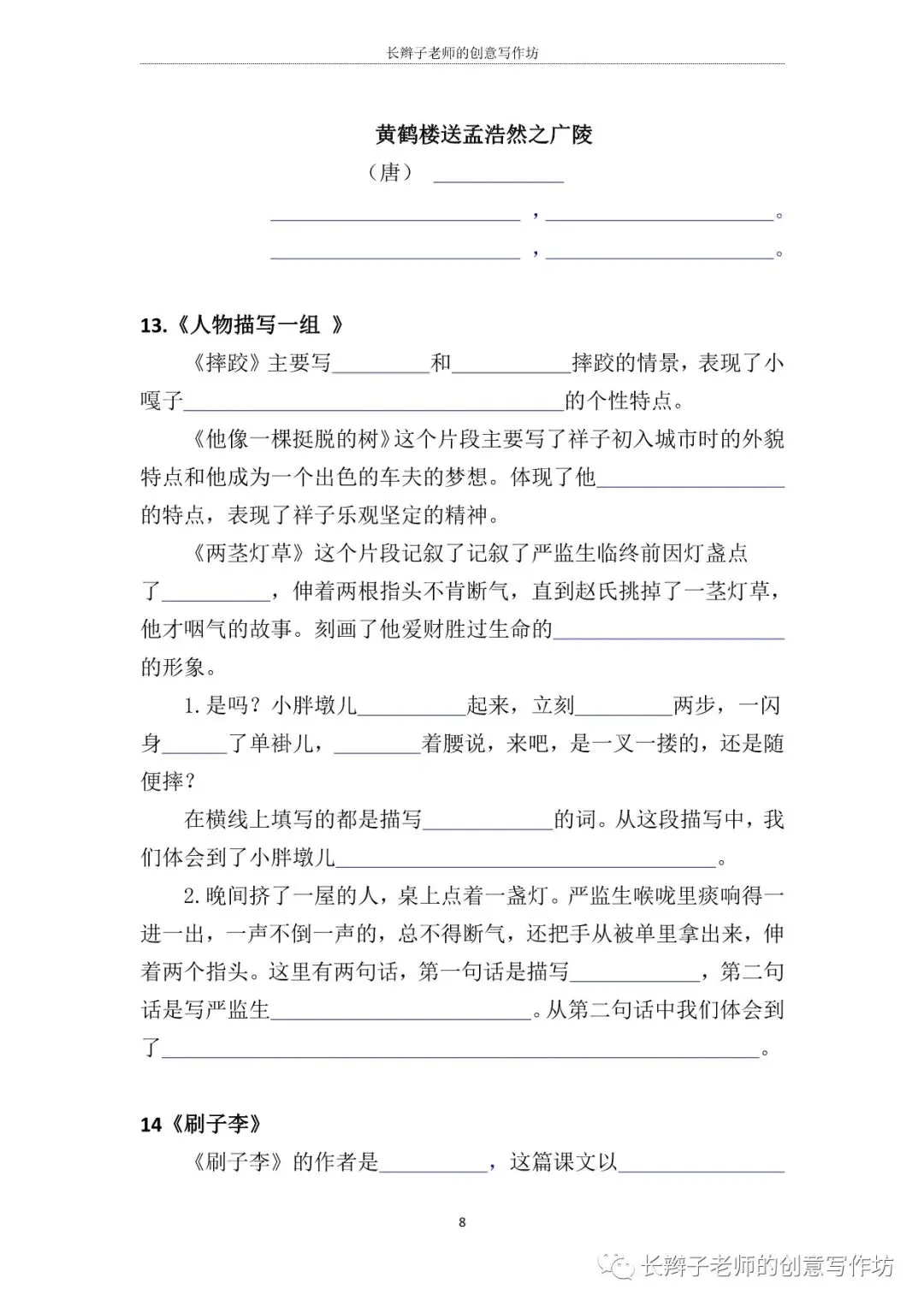 若需要“五下必背课文自测表”,请关注微信公众号“长辫子老师的创意写作坊”,在公众号首页对话框写——五下必背课文,便会自动弹出提取链接。
