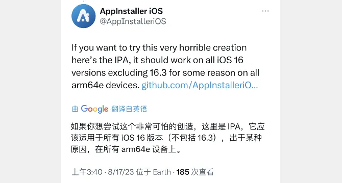 8月17日凌晨时段,AppInstaller IOS 开发者正式发布 KFDFilza 文件管理器,它支持 iOS 16.2 – 16.5 和 16.6 beta 系统,但不包括 16.3 系统,不过!仍然对一些设备不支持及不稳定。
