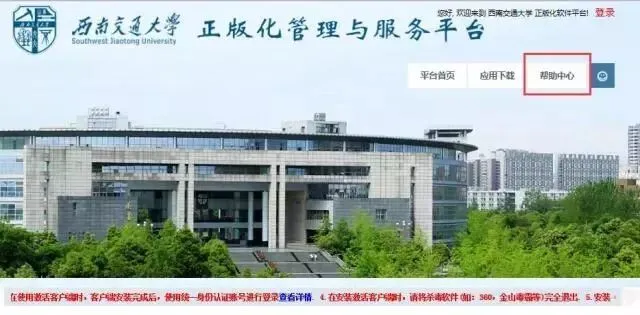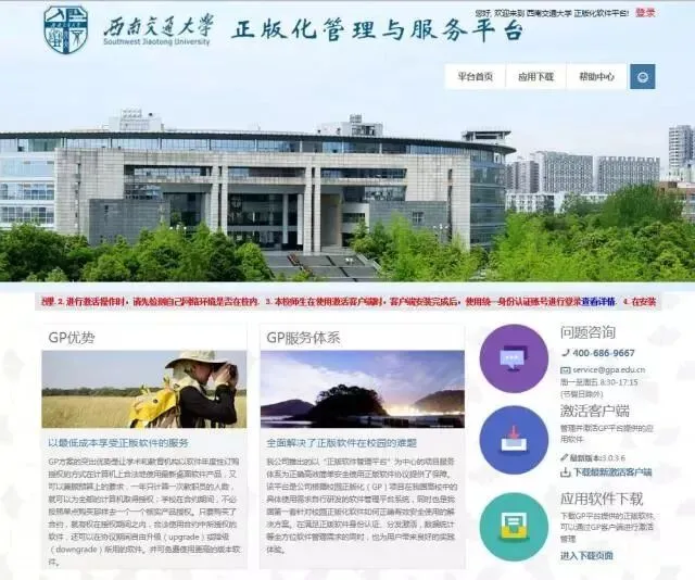 为践行国家知识产权战略、提升学校整体形象、维护校内信息安全,保障学校教学、科研、办公使用计算机正版操作系统及办公软件的需要、助力学校“双一流”建设,西南交大信网处现面向全校师生正式推出正版化服务与管理平台。