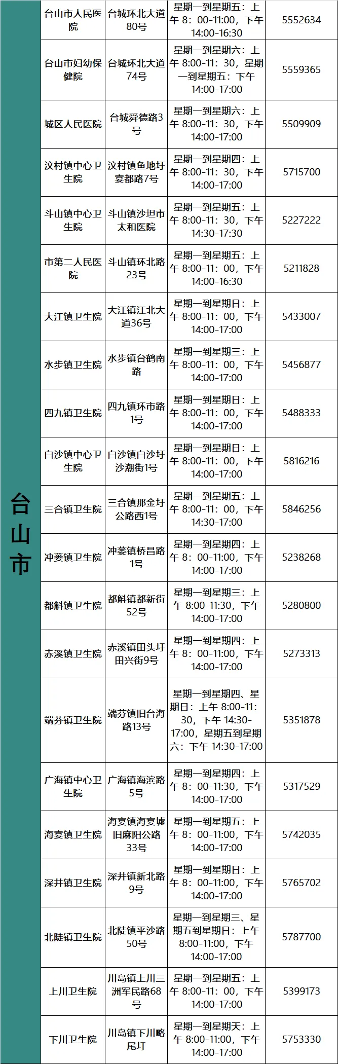 新冠疫苗接种点名单