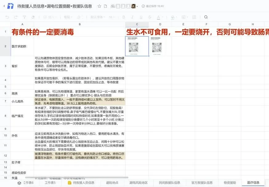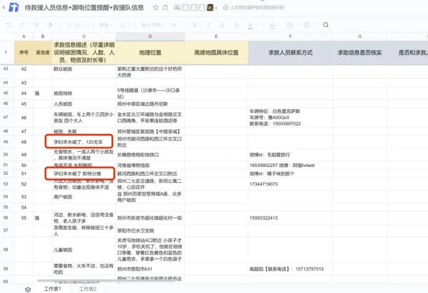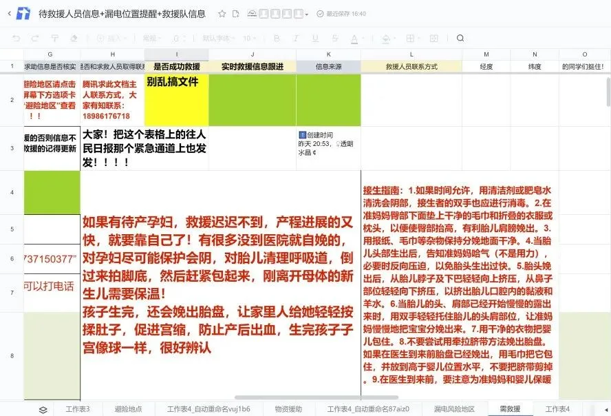 一个小时过去,表格已经更新了12版,出现了一位已经破水、即将分娩急需120救助的孕妇。