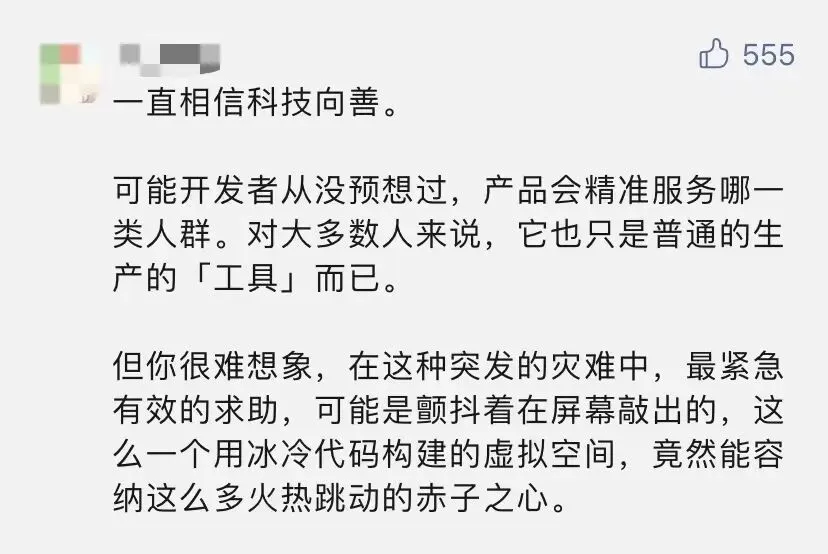 我们无法确切统计一个文档到底帮了多少人,但当我们看到了困境正被划去、“已成功救援”越来越多,灾情正在转好,看到人爱与希望在传递,这就够了。