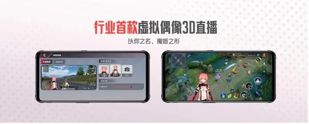 此外,红魔 7S 系列首发搭载虚拟偶像 3D 直播功能,用户可以一键在屏幕生成红魔姬 3D 形象,通过面部捕捉进行手机游戏直播。