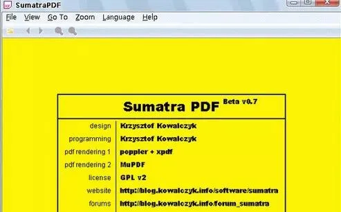 Sumatra PDF 由下列两个函数库组成:MuPDF – PDF函数库,Poppler – PDF函数库。