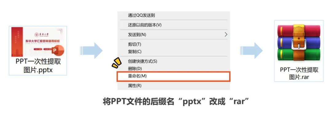 Step 1:把 PPT 文件的后缀名「PPTx」改成「rar」;