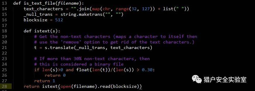 读取文本文件的前提是要识别哪些文件是文本文件。如果按照扩展名去判断一个文件是否是文本文件,那局限性就太大了。.config|.xml|.conf.|.bat等等扩展名,以及没有扩展名的都可能是文本文件,况且linux是没有扩展名这个概念的。因此我们采用了判断文件内容和编码的方法来识别文件是否是文本文件。