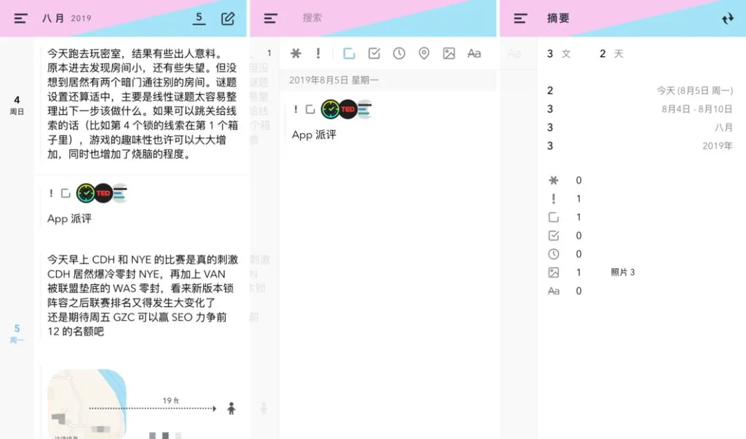 用 App 的人可以分为两类:第一种人用一个 App 解决所有需求,第二种人针对不同需求选择不同的 App。如果你是喜欢「瑞士军刀」式应用的第一种人,我会向你推荐 DayMore 这款一站式的全能日记本。无论是待办事项、日记还是记录转瞬即逝的灵感,你都可以用 DayMore 来做到。你可以在每一条日记中插入时间、位置等信息,或是将其设为一个待办事项。应用还提供了简易的过滤器,你可以通过点按图标来筛选出待办事项、含有图片等不同的日记。DayMore 的整体操作非常流畅自然,左右滑动即可在时间线、搜索和摘要三个界面中切换。除了操作的自然外,DayMore 还提供了多种主题、页面布局及文字间距等个性化项目,你可以根据自己的喜好定制一个专属日记本。日记里难免会出现一些隐私内容,因此日记本的安全性是非常重要的。应用支持使用 Touch ID 或 Face ID 来锁定日记。如果你需要云同步,你也可以选择使用 iCloud 或 Google Drive 进行同步。你可以在 App Store 免费下载 DayMore,应用含 25 元高级版内购,可以解锁更多主题、字体等功能。