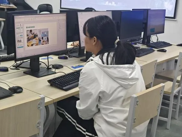 竞赛依次开展笔试考核、实操演练、现场汇报三个环节,笔试环节聚焦国产办公软件核心知识与 AI 理论基础,选手们认真作答展现扎实理论功底。实操环节中,选手需用国产办公软件结合 AI功能完成实践操作,将理论转化为实践应用。现场氛围紧张有序,选手专注操作尽显良好实践素养。作品汇报环节中,参赛选手依次上台展示设计方案、讲解亮点与逻辑并接受评委提问,呈现技术成果的同时体现创新思考。