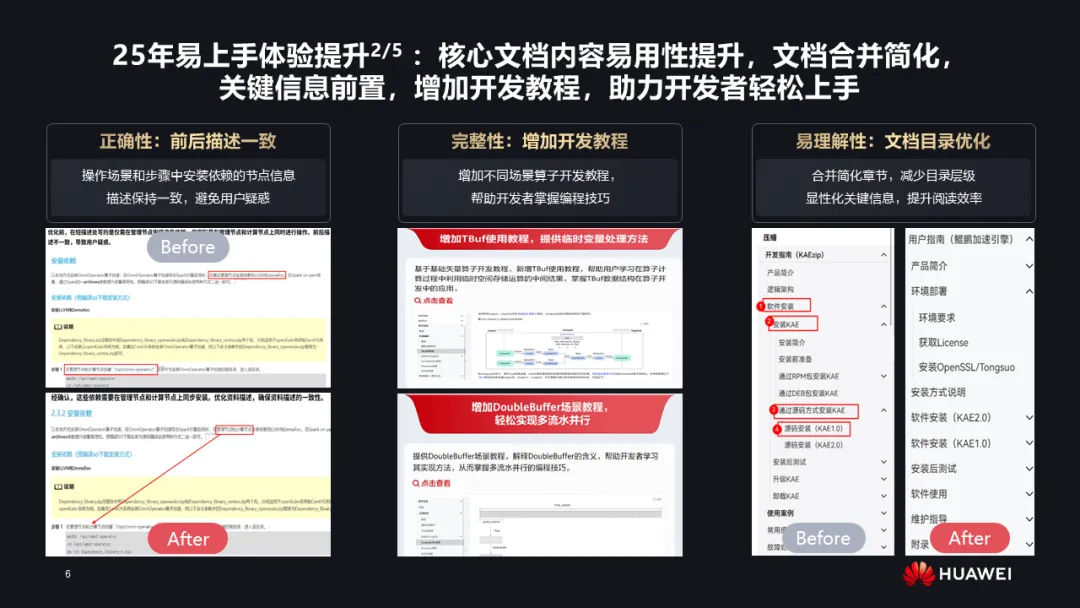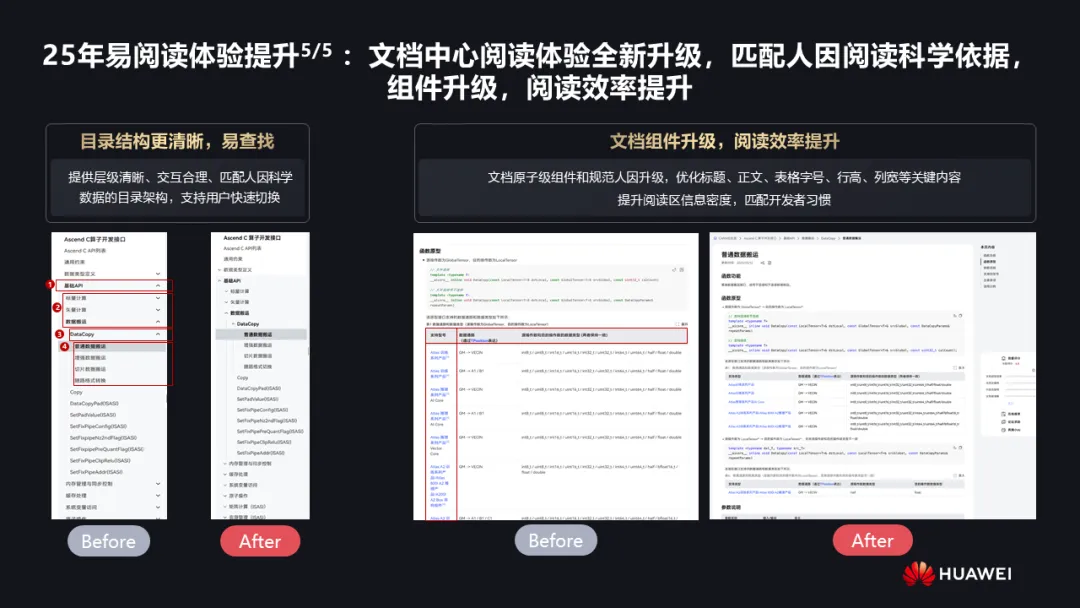 2025年我们聚焦面向开发者的信息体系做了全新升级,包括易实践、易上手、易获取、易求助、易阅读5大提升点,同时在文档共建方面也有一些实践探索,希望联合产业开发者为计算产业添砖加瓦。