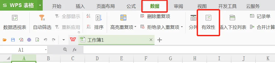 首先,我们先来看如下图所示的工具栏中“数据”下的“数据有效性”。