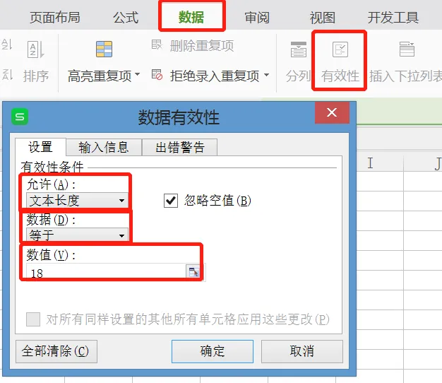 那么当输入单元格内的数字不满足18位的长度时,便会有错误提示框出现。