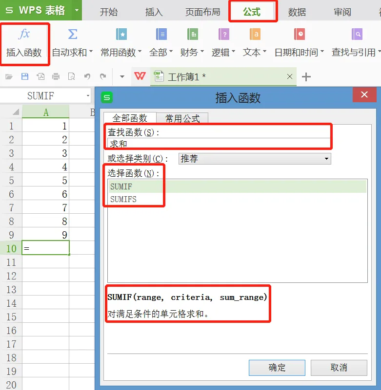 2)在“查找函数”下的空格内填入关键字,比如求和;