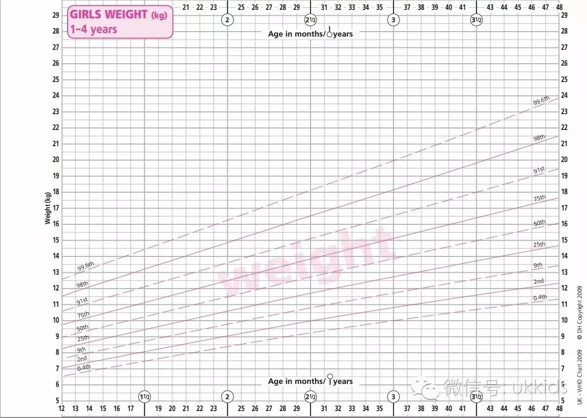 女孩: 1-4岁体重