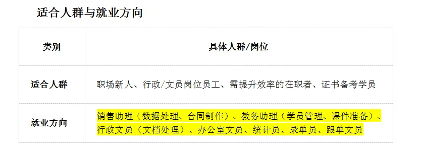 3.增强职场竞争力,适应行政、销售、教育等多岗位需求。