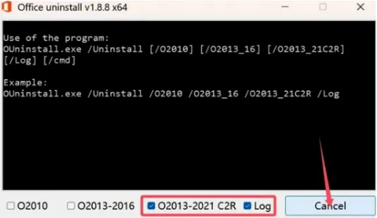 2.,双击打开后根据你之前电脑安装的office版本进行勾选,同时把log勾选上,然后点击卸载。