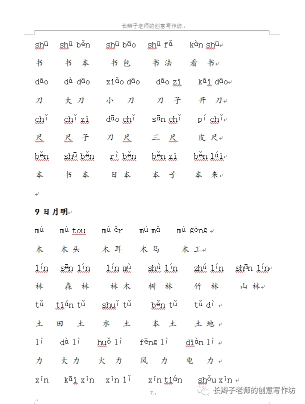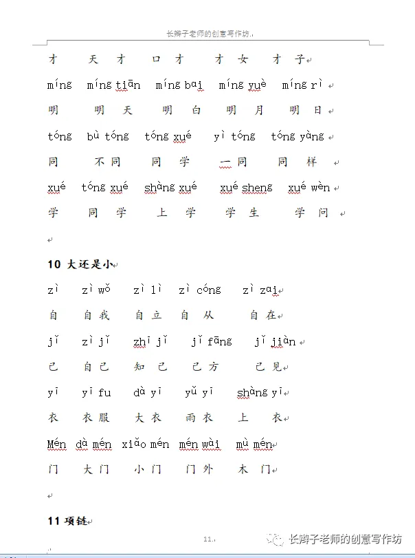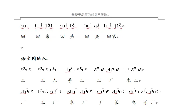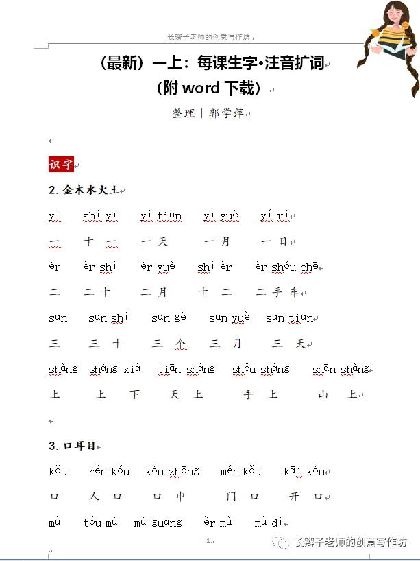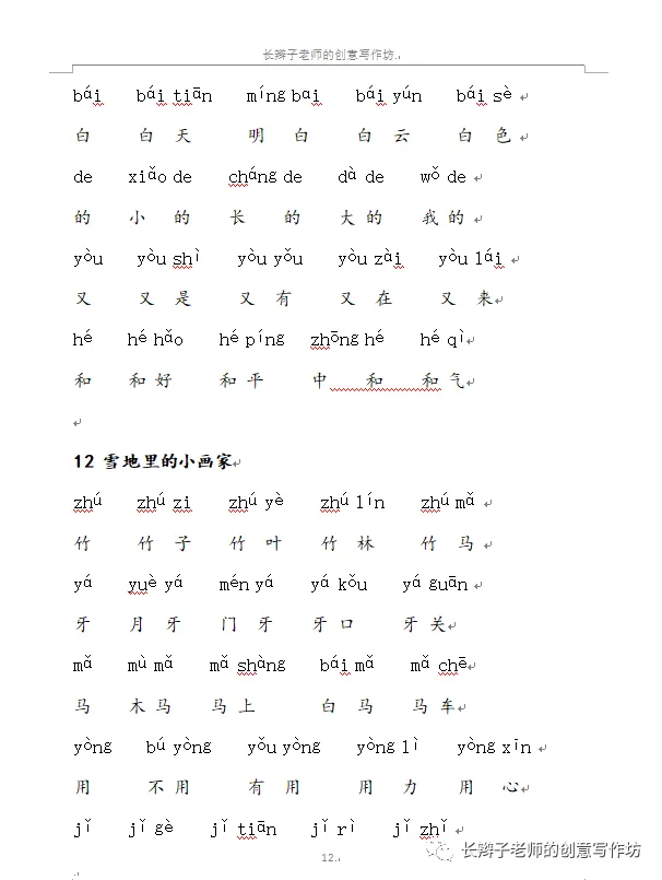 若需要《一上全册读词复习》,请关注微信公众号“长辫子老师的创意写作坊”,在首页留言区写下——一上扩词,便会自动弹出提取链接。
