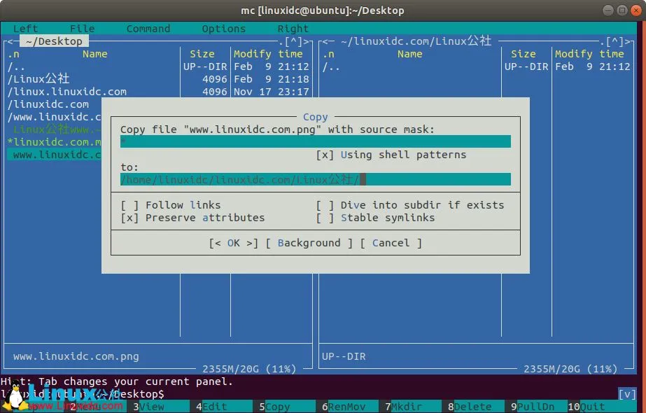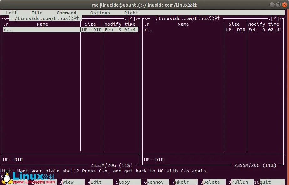 Ubuntu 18.04下可视文件管理器Midnight Commander的安装使用