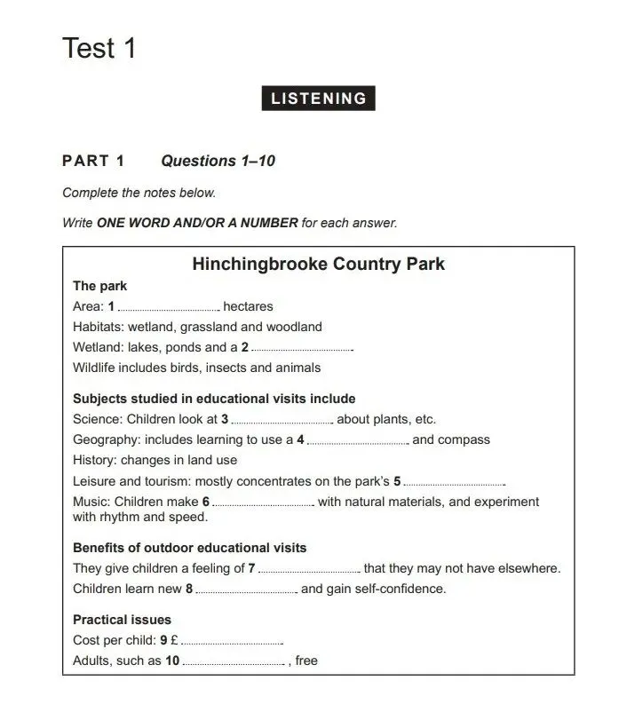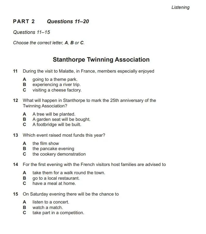 听力部分以4个Parts进行标记,题目数量为40个items,完成时限为30分钟,并且不设example部分。