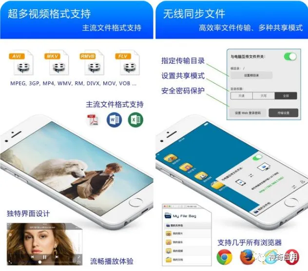 文件管理 – 我的文件包是一款iOS 平台的文件传输管理工具,采用传统 Windows 操作系统界面风格。支持音乐、视频、GIF 动画等文件。