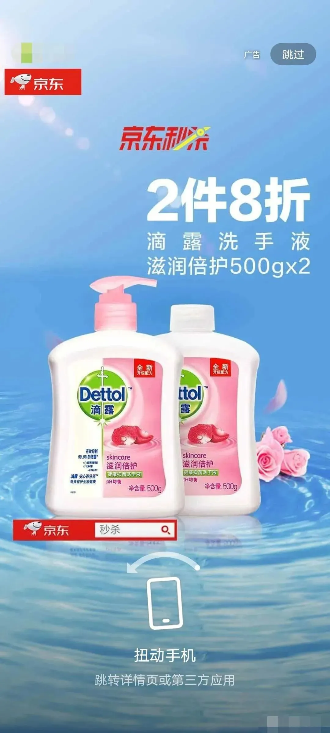 瞧这开屏广告多贴心,都为你省去手动点击广告的步骤了。不管你是走路,躺床上翻身等,只要稍微晃动一下手机就能直接跳转到广告第三方界面。