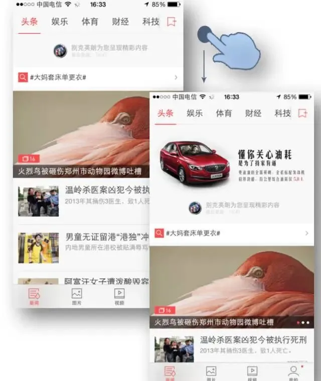 但手机APP不仅想用广告霸占开屏的位置,任何一个角落都想给你安排上广告,比如在信息流中、在评论区、在文章页内/图集详情页,甚至下拉刷新查看最新内容时能出现广告。