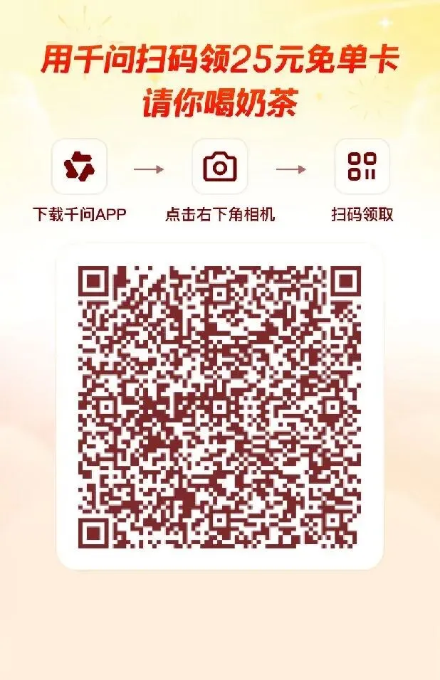 1️⃣ 基础必领:打开千问,就可以领1张25元免单卡,奶茶/外卖/年货都能用(实付0.01元到手)