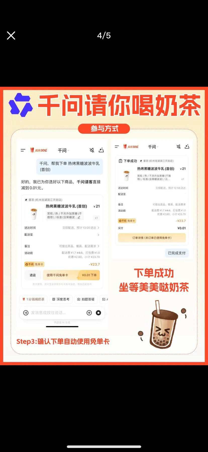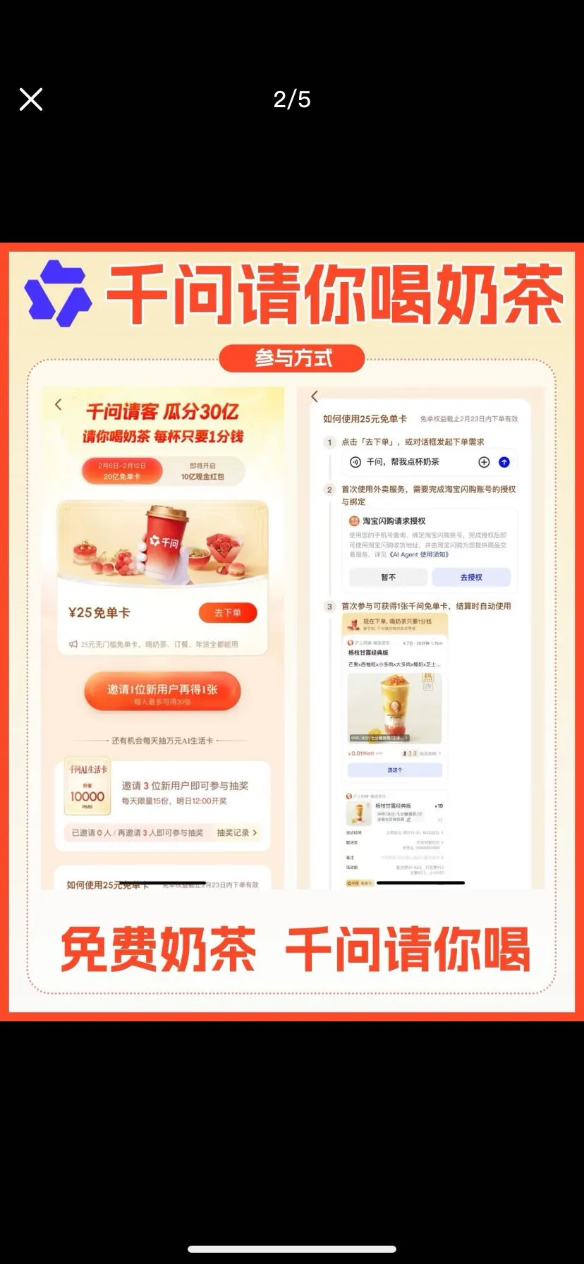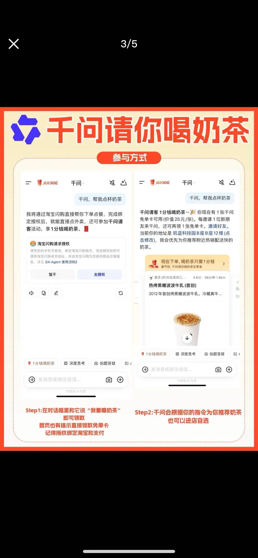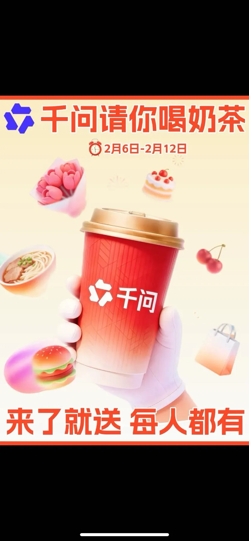 千问30亿福利第一弹就请全国人民喝奶茶!