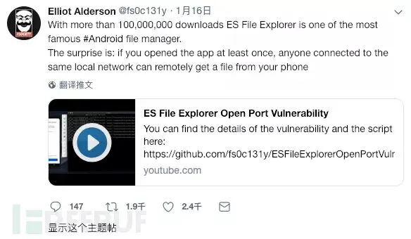 庆幸的是,在得知该漏洞之后,ES文件管理器的开发人员很快就修复了这个漏洞,并且及时发布了新的版本。