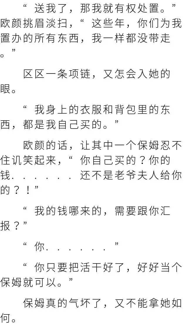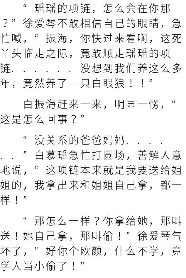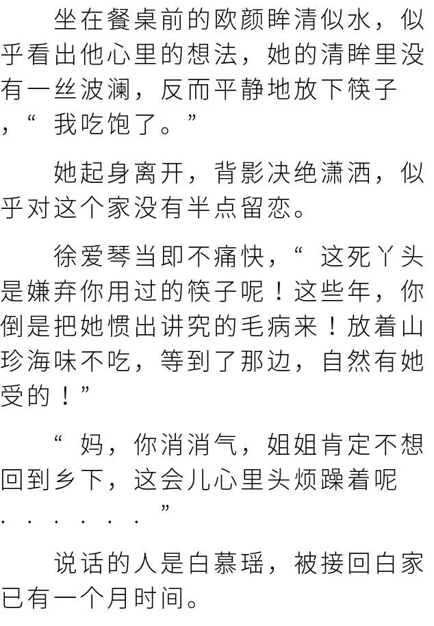 为了不让瑶瑶受委屈,也为了将这死丫头尽快赶走,他们两人瞒着老太太,将这死丫头的信息挂到寻亲网上,终于有一天,这死丫头的家人打电话来,说要接她回去。