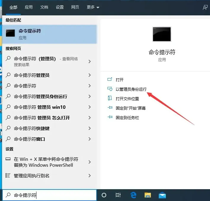 1、首先在开始菜单旁边的搜索框中输入命令提示符,然后以管理员身份运行命令提示符打开界面。