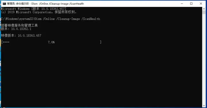 3、如果在前一条命令执行后发现系统文件有损坏的话,就执行“Dism /Online /Cleanup-Image /CheckHealth”命令。