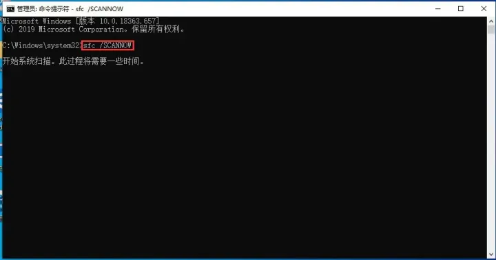 5、最后在命令提示符的界面中输入sfc /SCANNOW 的命令再回车就可以了。